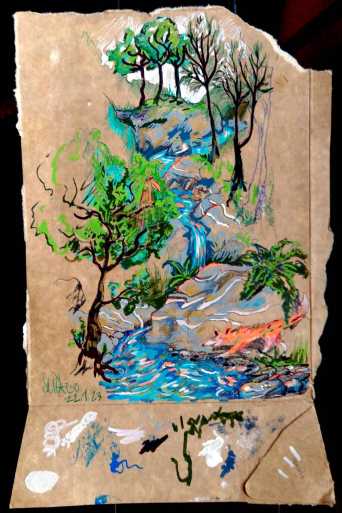 dernierement je passeé du temps dans la montagne et l’ambiance de riviere et foret sauvage m’a bien inspiré!