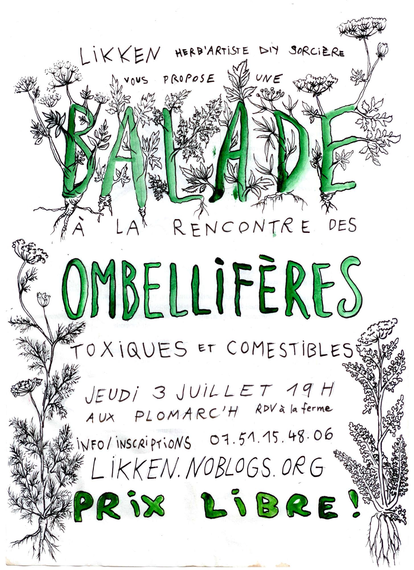 je propose une balade à la rencontre des ombellifères pour apprendre à reconnaitre les espèces toxikes et comestibles. Dans cette famille botanique c’est particlierement difficile d’identifer les differentes especes. Et les Ciguës et l’Oenanthe sont parmi les plantes qui causent le plus d’accidents d’intoxication. Ce sera l’occaz de les apprivoiser un petit peu.