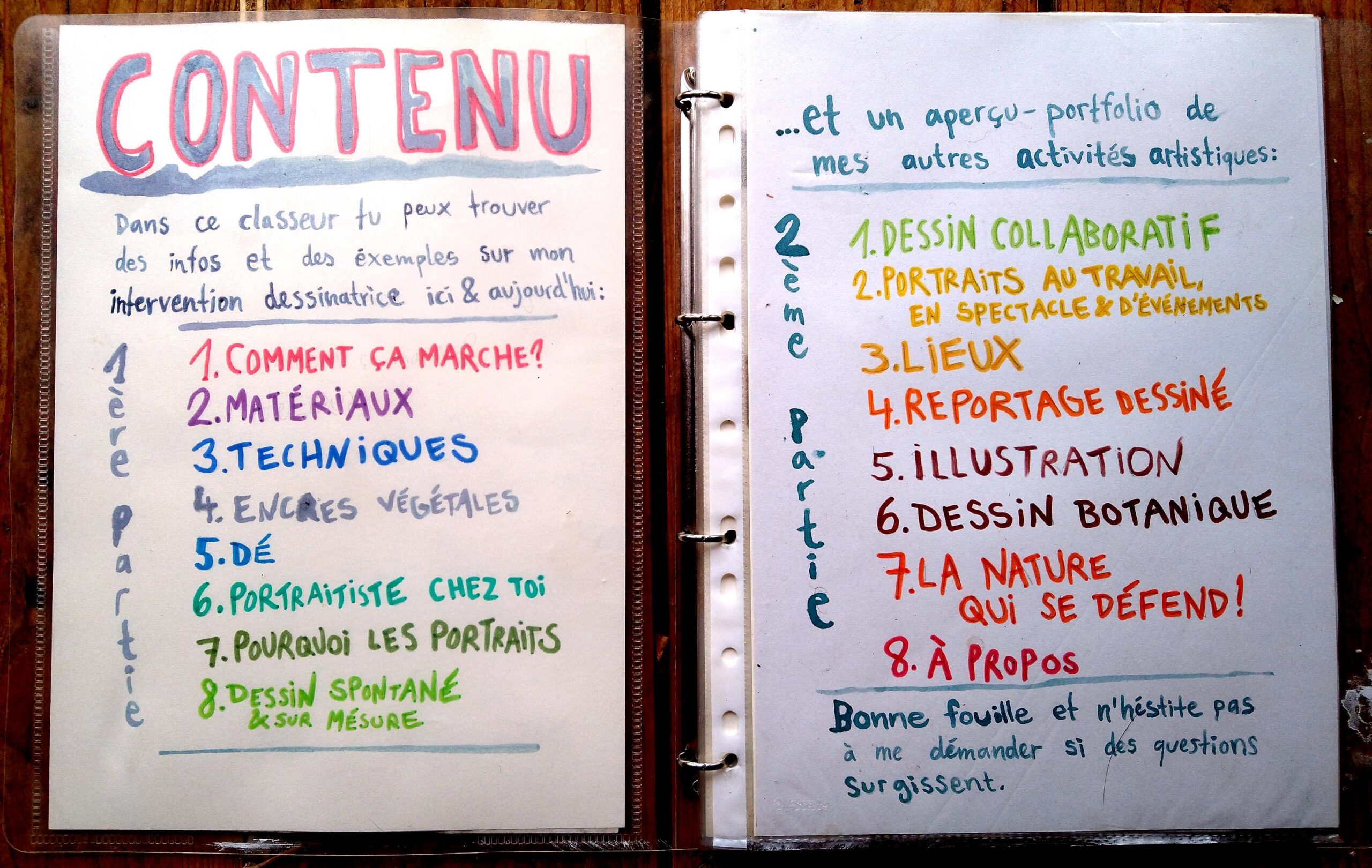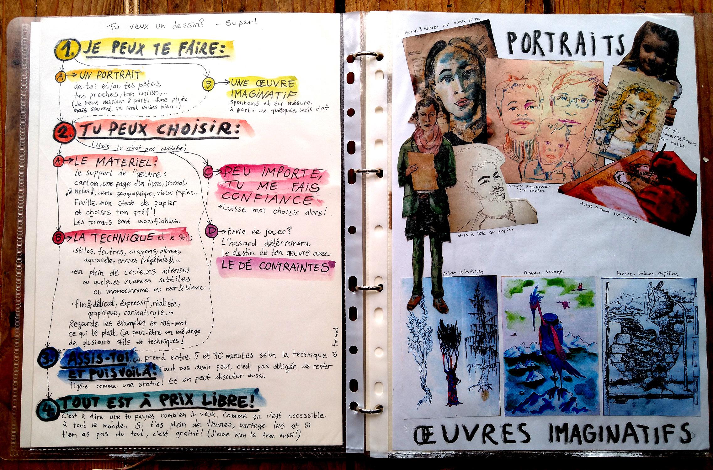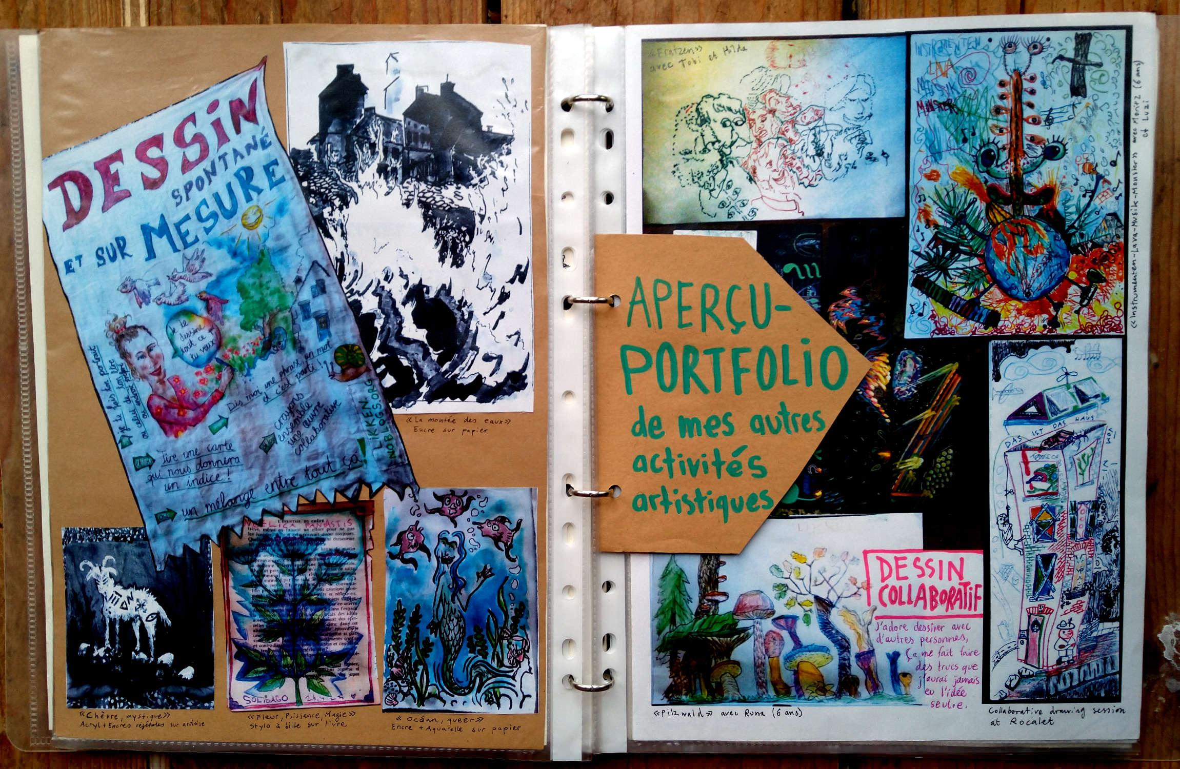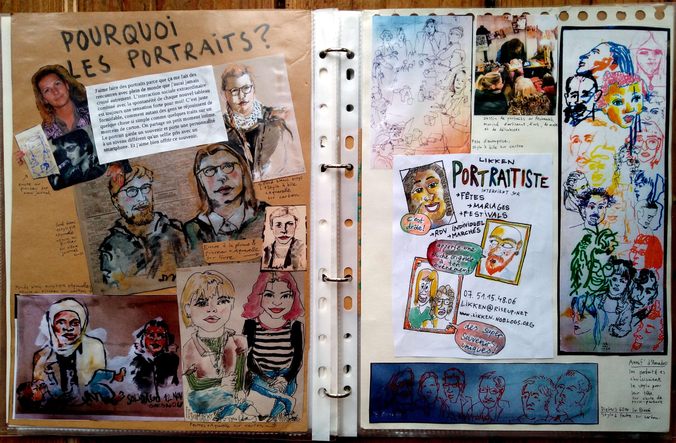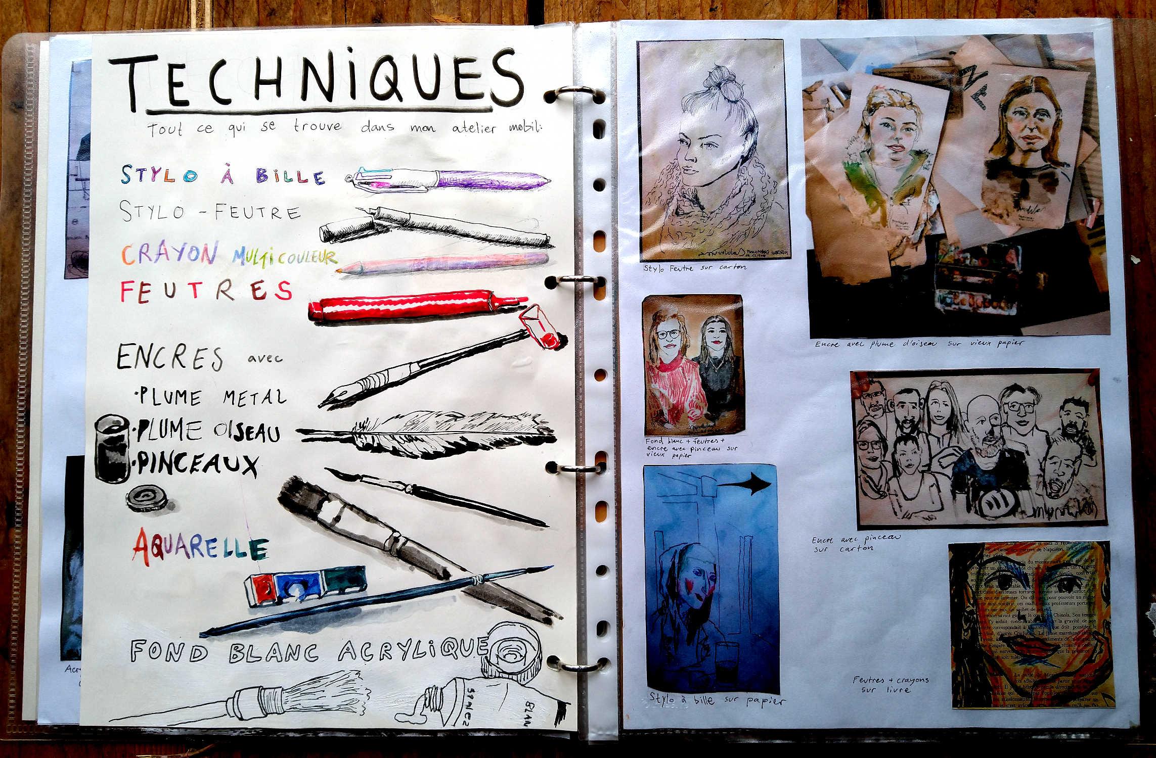 J’ai fai un classeur qui montre mon travail quand je fais des interventions en portraitiste. Mais aussi en numerique il montre bien un resumé de ce que je crée.